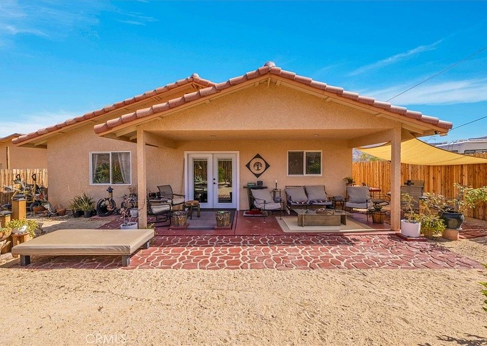 Welcome to this charming 3-bedroom, 2-bathroom tile home in the heart of 29 Palms! This residence has been cared for, boasting modern finishes and an inviting atmosphere. Enjoy the benefits of PAID SOLAR energy, providing sustainable living while reducing your utility costs. The fenced yard offers privacy and ample space for outdoor activities, perfect for pets or entertaining guests. With its convenient location and thoughtful upgrades, this home is a wonderful opportunity for comfortable desert living. Don't miss out on making it yours. This has an assumable VA loan with a rate of 2.75%, and seller is willing to help buyer with closing costs.