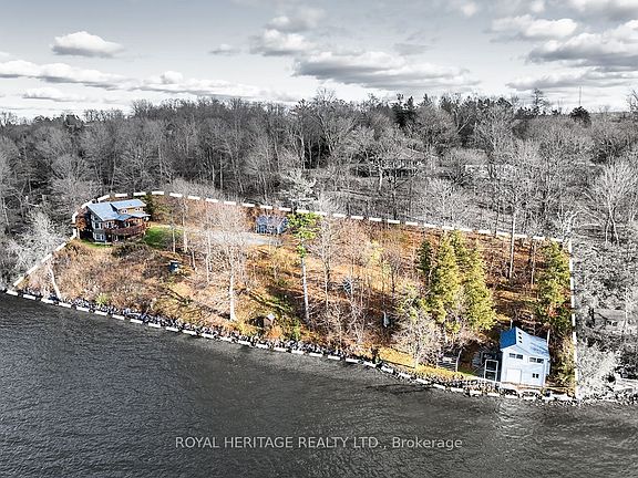 Offering exceptional quality and privacy with 387ft of frontage on the south shores of Rice Lake. This Linwood built home rests on a secluded 1.4 acre lot on a dead end road. The clean shoreline offers excellent swimming and unobstructed views of natural skyline & sunsets. The impeccably kept home offers 4 Bedrooms & 3 Washrooms and is filled with natural light, built with consideration offering clear views of the lake from every vantage point. Open concept main floorplan with vaulted ceilings and hardwood floors, Eat-In kitchen with centre island & stone counter. 2nd floor loft bedroom with ensuite bath & W/I closet. Main floor bedroom, full bath, laundry & custom fireplace. The lower level is completed with 2 bedrooms, 3pc bath & sauna and a walkout to greenspace. Outdoors you'll find a spacious storage shed and a bunkie for guests in the summer time. New dock w easy lift for winter storage. Lakeside firepit. Tons of parking. Truly a resort style property that must be seen to be fully appreciated!