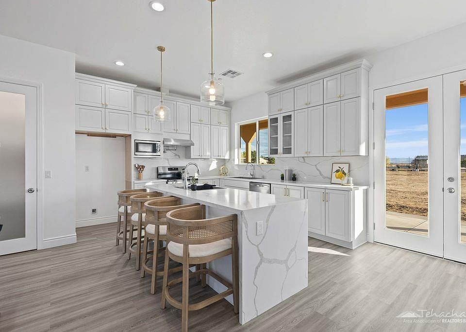 Brand-new 2025 construction in highly desirable Antelope Acres! This stunning 1,833 sq. ft. home sits on 2.5 fully fenced acres and offers modern comfort, open space, and high-end design throughout. Featuring three spacious bedrooms and two beautifully finished bathrooms, this home is filled with natural light thanks to oversized windows and soaring 10-foot ceilings with 8-foot doors. The gorgeous kitchen is a true standout, showcasing waterfall countertops, abundant cabinetry, two sinksa full kitchen sink plus a convenient prep sinkand a bright, open layout perfect for cooking and entertaining. Oversized windows bring in amazing natural light, highlighting every detail. Enjoy the modern touches throughout the home, including recessed lighting, ceiling fans, and paid solar for energy efficiency. The large master suite offers an enormous walk-in closet and peaceful views of the property. At the back of the home, a full-length covered patio with ceiling fans spans the entire widthperfect for relaxing, hosting, or enjoying the quiet desert evenings. The property is fully fenced with a gated entrance and is located within the Sundale Mutual Water District. A perfect blend of modern design, quality construction, and serene country livingthis home truly has it all.