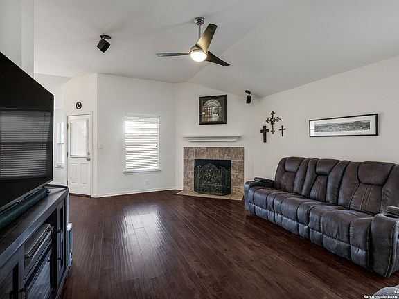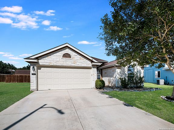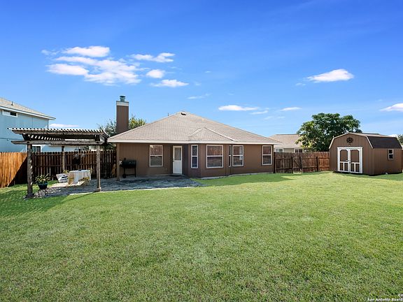 Discover the perfect blend of space, comfort, and convenience in this charming 3-bedroom, 2-bath home, situated in a peaceful cul-de-sac on the second largest lot in the neighborhood. The expansive backyard is ideal for outdoor relaxation and entertaining, featuring a covered patio, a pergola, and a well-maintained shed for additional storage. Inside, you'll find laminate flooring throughout the entire home, including all bedrooms, and a built-in surround sound system for enhanced entertainment. With no HOA, you'll have added flexibility to make this home your own. Conveniently located near Randolph Field, IH-10, and I-35, you'll enjoy quick access to the air base and all that San Antonio has to offer. Don't miss the chance to make this beautiful home yours-schedule a visit today!