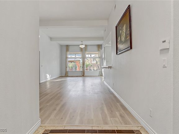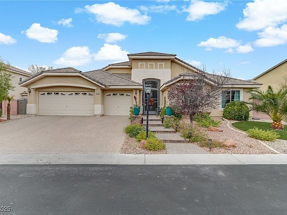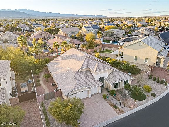Welcome to this beautiful 4-bedroom, 3-bathroom single-story home located in the quiet, gated community of Canyon Mist Estates. Set on a landscaped 1/3-acre lot, the property features paver driveways, a 3-car garage, and RV parking. Inside, you’ll find vaulted ceilings, fresh custom paint, and upgraded baseboards that enhance the open, light-filled layout. The floor plan includes a grand entry, formal dining room, spacious living areas, and a family room with a cozy gas fireplace. The chef’s kitchen offers granite countertops, abundant cabinetry, a walk-in pantry, and premium stainless steel appliances. The primary suite provides a relaxing retreat with a sitting area, walk-in closet, and comfortable design. Outside, enjoy mature landscaping and a charming gazebo in the private backyard—perfect for both quiet evenings and entertaining. This desirable northwest Las Vegas location is known for top rated public schools, and convenient access to major shopping centers.
