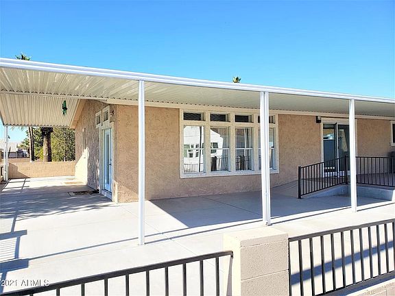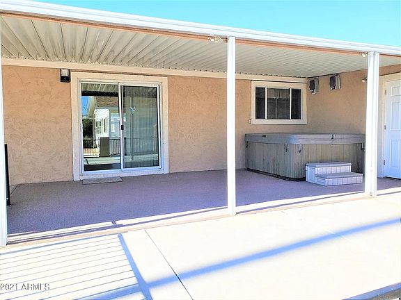 7215 E Inverness Ave, Mesa, AZ 85209 is a single family home that contains 2,401 sq ft of living space and was built in 2006. It contains 4 bedrooms, we converted the den into a bedroom, and 2 bathrooms. This manufactured home sits in the Desert Sands Gold community and backs up to the fifth hole tee box. Landscaping maintanence is minimal due to front yard gravel with back and side yards containing cement. Huge patio area facing the golf course for wonderful low key nights gazing into the grass. The kitchen is very spacious with more than enough cupboard space for any dishes you desire. Plentiful pantry space. Good size dining area along with more space down the stairs by the dry bar for guests or an extra gaming area. The main bathroom has 2 sinks for multiple occupants. The master bedroom is spacious with plenty of room in the master bathroom that contains both a shower and a separate bath. The two sinks are separated providing each individual with room to store all their personal hygiene items. All appliances with stay in the house including the washer and dryer. There is an above ground hot tub that is perfect for the cooler months. One car garage that has a work bench and cupboards for storage.