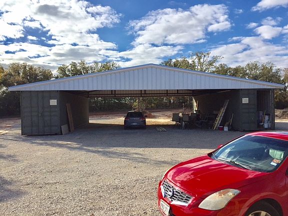 Charming country home built in 2016 with 1 bedroom and 1 bath with rustic appeal in modern times on a little over 34 acres. Kitchen has stainless steel appliances and an island. Hot water heater is On Demand. The washer and dryer convey. The home has a cell phone booster and satellite internet. 2 water wells supply the home. The massive 1600 sq ft carport comes with two 40 ft containers for storage and is framed with 4in square tubing and C Purlins. Plenty of acorn producing trees to bring in the wildlife as well as some open pasture for the other animals. Property is fenced. Any owned minerals with convey. Westbound water available at the road.