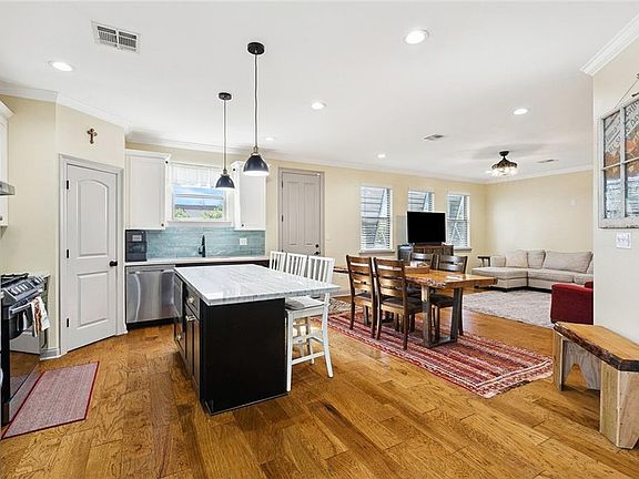 This 4-year-old beauty with 3 bed 2 baths, offers a spacious open floor plan in desired Arabi, LA! The kitchen is the heart of the home, featuring a large island, gas range, and all of your stainless steel appliances included and opens to the dining & living area. The primary bedroom has an attached bathroom complete with double farmhouse sinks, a great walk-in closet, and beautiful fixtures & finishes throughout, creating a perfect retreat. Stylish blue storm shutters add a touch of character to the home's curb appeal and extra protection. Double driveway gives ample parking space. Fenced in yard with a deck off the house in the back creates a great space to entertain and relax! Located in Flood Zone X.