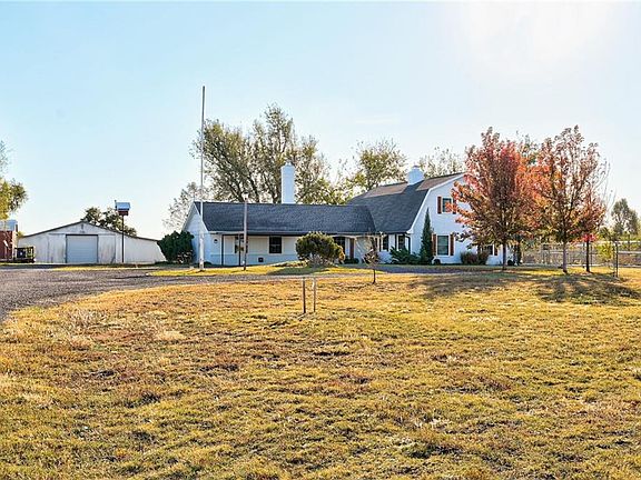 13 ACRES! Features: Circle drive & parking w/carport, Buildings: 30x30 shop 2021, spray foam insulated, electric, Gravel drive, storage shed/well house & electric, small red barn w/electric (used as office), 3 car detached covered garage w/electric, 60x80 red barn, side horse stall, or lean to with tall garage door, & 1 chicken coop w/timers on doors & electric, 20x20 concrete Pad in back, Pole lighting, Sprinkler system, 10x15 storm shelter, Carpet 2019, Hot Water Tanks 2021,Windows double pan Vinyl low e 2012, Microwave 2022, Interior Paint 2019, KitchenAid Stainless Steel Appliances 2019. 2 MASTER SUITES. Living Area w/Crown molding, Pellet Stove & Built Ins, Living Area 2 w/Crown molding & Fireplace, Kitchen w/Scratchless sink, KitchenAid Icemaker, Master Bedr w/Pellet Stove, WalkIn Closet, Canned Lighting, Master Bath w/Custom shower & Granite, Upstairs Bed 2 w/WalkIn Closet,Upstairs Bed 3 w/WalkIn Closet,Upstairs Bed 4/Bonus/2nd Master w/Private Bath 3,Alarm System - Fresh Paint