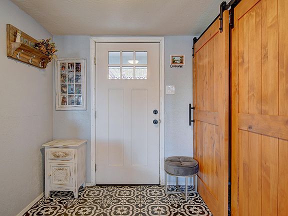 Bright and open floor plan with plenty of room to grow! Kitchen with stainless steel appliances & bar top area overlooking the living area. Living area has vaulted ceilings, ceiling fan & a wood burning fireplace! Recently updated with barn doors, custom cabinetry, flooring, fixtures and tile surrounds! Cool off in the pool or relax under the shaded covered patio! RV Pad!