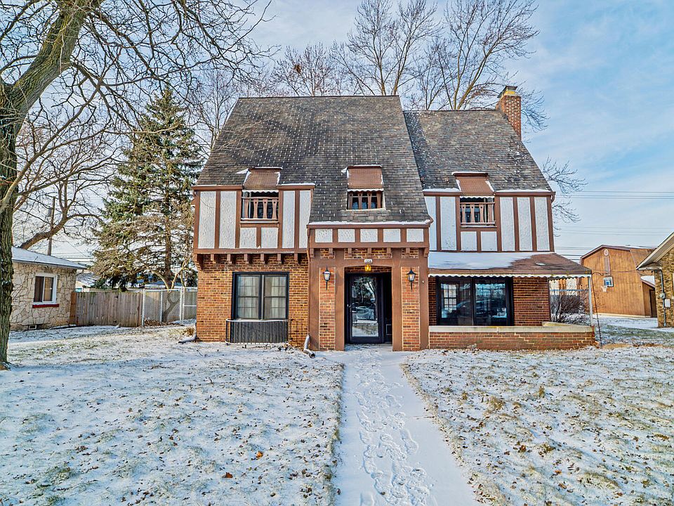 OLD STYLE CHARM delights in this brick-built Tudor style home blocks away from Purdue Northwest!PERFECT FOR COMMUTERS - Conveniently located on a tree lined street in Woodmar with easy access to expressways, the South Shore train, and Purdue Northwest. NEW AC UNIT (2022)Upon entering you'll find a family room with a WOOD BURNING FIREPLACE and a new custom sliding door out to the COVERED FRONT PORCH! Left of the entrance is a dining room with ORIGINAL BUILT-IN SHELVES. Kitchen remodeled with GRANITE countertops and REAL WOOD soft-touch close cabinetry (2017). NEW SS Kitchen Appliances (2021). Upstairs you will find a full bath and 3 bedrooms with the main having his/hers closets. Plenty of storage in the FULL UNFINISHED BASEMENT! Workshop table, utility sink, and NEW Washer & Dryer (2021) stay. Ample backyard space featuring a NEW Fence (2021).The 2 CAR GARAGE also has a loft for storage and a carport on the side to accommodate an extra vehicle. NEW Custom Front Door (2021), NEW Custom Sliding Door to Front Patio (2021), NEW Custom Front Windows (2021), NEW Blinds (2021), NEW Vinyl Windows in Kitchen and Half Bath with Bidet (2017).Schedule your showing TODAY!