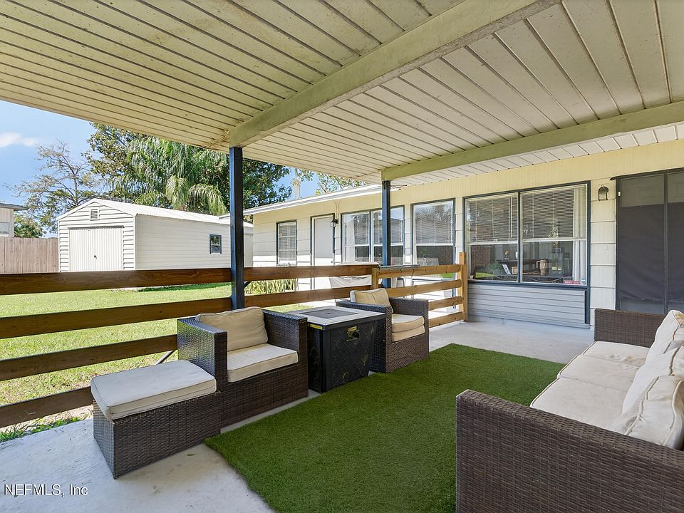 Welcome to this charming 3-bedroom, 2-bath home perfectly situated on a corner lot just minutes from NAS Jax and the Orange Park Mall! You'll love the inviting courtyard area, spacious fully fenced yard with a brand-new fence, and the large storage shed—ideal for tools, hobbies, or extra storage. A carport adds convenience, while the updated master bath brings a fresh, modern touch inside.