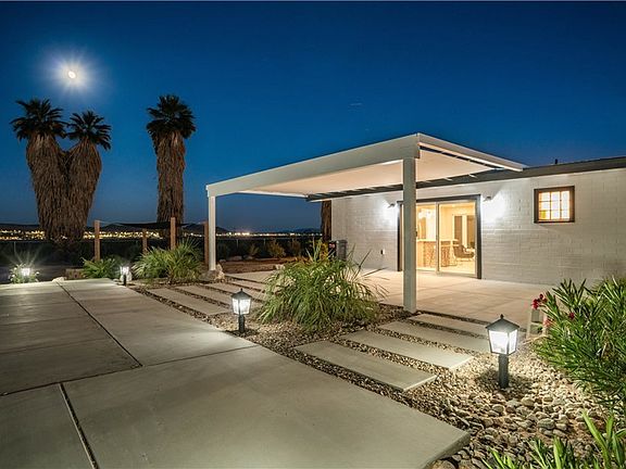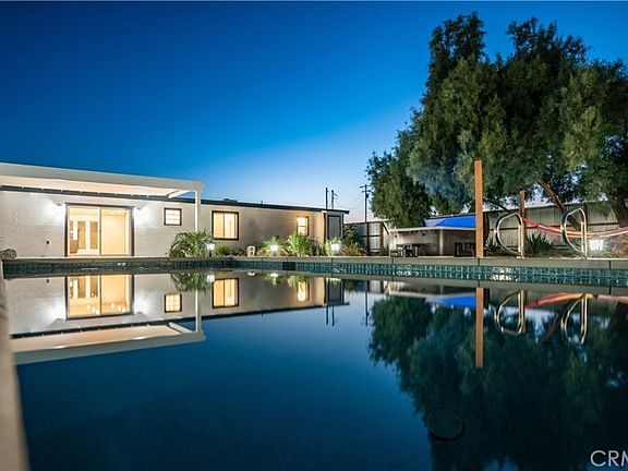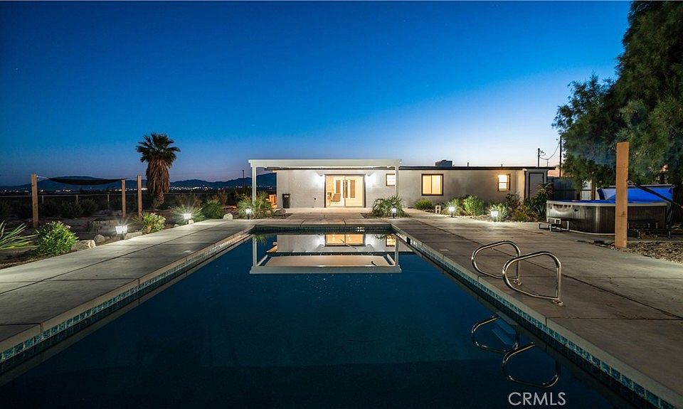 Welcome to An Oasis in the Desert. On this expansive 26.6-acre lot you will find privacy, peace and perfection. The main structure is a Mid-Century brick home with 3 Bedrooms and 2 Baths, all beautifully renovated by a local General Contractor. This Complete Renovation took the original structure down to the bare bricks. From this basis, a brand new home was constructed keeping the original, solid brick frame. A new interior was constructed adding all new electrical, plumbing, fixtures, and appliances. This double-walled and insulated structure provides the type of quiet we all desire as well as protection from the outside elements. When being outdoors is craved, this property boasts a brand-new inground pool, complete with a floating pathway around the pool, the spa, and between the house and guest house. This outdoor area is surrounded by a wide variety of original and new indigenous plants and rocks to create a stunning tropical environment. All plants are on a sprinkler system to make their enjoyment stress-free. The guest quarters is found at the far end of the pool area and has an outdoor shower and both an exterior access bathroom and an interior bath. The above-ground spa is also brand new and has the perfect adjustments for the jets and temperatures to help you unwind. The attached 20-acre parcel is perfect for exploring, hiking or developing into anything a new owner may desire. The water supply is a well that was recently upgraded. Enjoy bird watching or enjoying the night sky beyond what you have ever experienced. This property has a gorgeous Mountain Views to both the North and South, where the world-famous Joshua Tree National Park is located. The drive to the East Entrance of the park takes only 19 minutes.