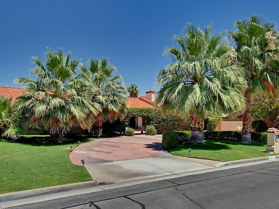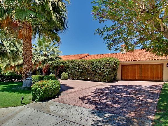 Beautiful home on quiet cul-de-sac located in the estate area of Magnesia Falls Dr. on nearly 1/2 acre lot with no HOA fees. Entering into the new double doors, this home has a dramatic Spanish resort feeling with open floor plan, beautiful natural wood beam ceilings & floor to ceiling rock fireplace. Tile flooring, custom built-ins, and upgraded lighting fixtures. Open kitchen with new stained concrete counters, center gas range top, stainless appliances, & wine refrigerator. Master bedroom with walk in closet. Upgraded bathrooms. Three sets of glass sliders leading to covered patio that runs almost the length of home. One of the major selling points is the beautifully landscaped, & hedged for privacy back yard with over-sized pool w/spa. Made for entertaining, it features an outdoor cook center with dining pavilion. Two car garage & circular driveway. Walking distance to the River and minutes to El Paseo for dining & entertainment. Don't miss this truly unique home!