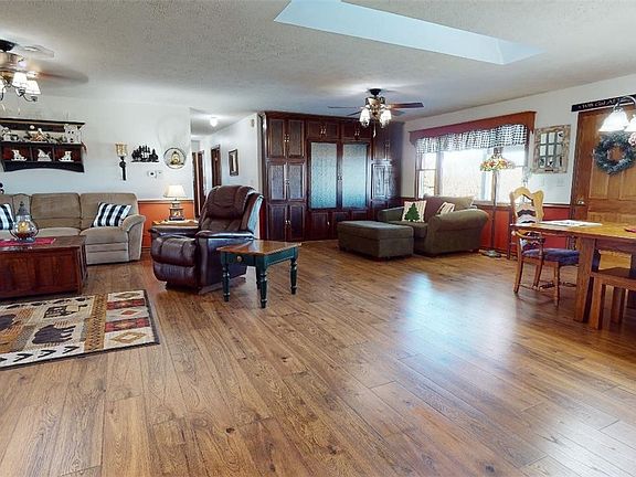 Your dream ranch in the country awaits you! This beautiful 3 bed 2 bath brick ranch home offers an open living area, a modern kitchen with granite countertops, stainless steel appliances, high-grade laminate flooring, a wood burning stove to heat the whole home, solid wooden doors, and gorgeous custom-built cabinets in the living area. It comes with a newer roof, propane-forced air, and central A/C. Storage abounds in the attached two-stall garage and the full dry basement. The amenities don’t stop there! The 21+ acre property offers a stocked pond, orchard with 25+ apple trees, a producing hay field, 30 X 60 barn to store your hay, spacious hunting grounds, 12 X 12 gazebo, a 12 X 26 electric serviced wood shop, storage above the wood shop, covered decks on front and back side of the home, a roomy concrete parking pad/drive-way, a fenced-in garden, storage shed for housing farm equipment, and some mineral rights will convey along with an abundant amount of pre-cut firewood. If you