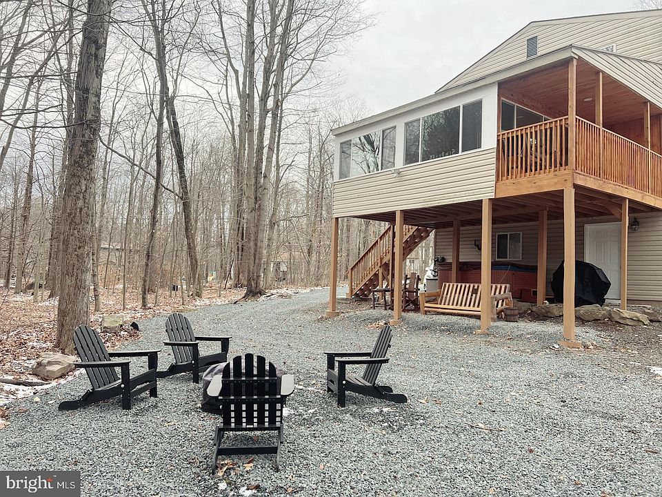 The Perfect Pocono Woodland Hideaway! Discover this spacious 5-bedroom, 2.5-bathroom home with two game rooms, perfectly nestled in the amenity-rich Arrowhead Lake Community—a true year-round retreat. Located on a desirable corner lot adjacent to an undeveloped parcel, the property offers exceptional privacy. Plus, it’s connected to public sewer, eliminating any worries about septic maintenance or costly failures. This home’s open-concept design flows effortlessly from a sun-filled living room—complete with expansive windows and a cozy wood-burning fireplace—into the kitchen and dining area, creating the perfect space for entertaining. Offered fully furnished, it’s move-in ready and ideal as a primary residence, vacation getaway, or high-performing investment property. Most of the furniture is crafted from durable hardwood and carefully selected to enhance the home’s inviting aesthetic. The property also features remote AC and heating monitoring, along with a brand-new roof installed in 2024. With over $60,000 in annual rental income generated in 2024 across STR platforms, this property delivers both beauty and proven earning potential. The spacious game room features a high-end pool table, foosball table, and a stunning electric fireplace, creating the ultimate entertainment space. Sliding glass doors open to a covered deck where you can relax and soak in the beautiful Pocono scenery. This home also includes a private hot tub and a ChargePoint Level 2 EV charger for added convenience. Located in the sought-after Arrowhead Lake community, you’ll have access to two lakes, four sandy beaches with designated swimming areas, three outdoor pools, a fitness center, playgrounds, basketball and sand volleyball courts, plus tennis and pickleball courts. Winter fun is just a short drive away with the community snow tubing hill and only a 20-minute drive to Jack Frost and Big Boulder ski resorts. With low taxes, affordable HOA fees, and endless year-round activities, this property offers the perfect blend of relaxation, recreation, and investment potential!