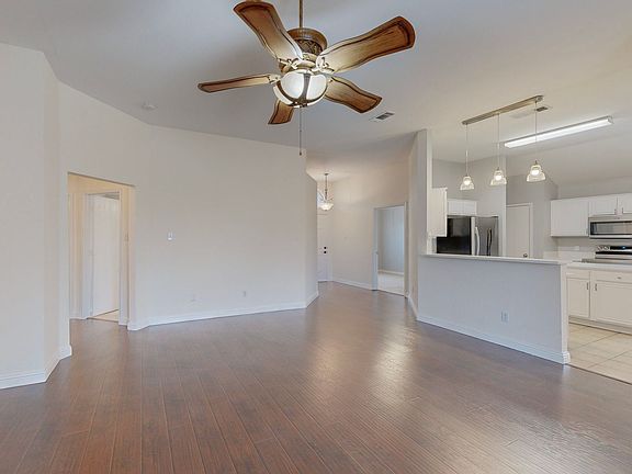 Step into this warm and welcoming home featuring stylish updates throughout. The open floor plan is enhanced by elegant iron and wood ceiling fans, modern light fixtures, and rich decorative colors that create a cozy, inviting atmosphere. The living area centers around a beautiful stone-accented fireplace with a classic mantleperfect for relaxing or entertaining.
