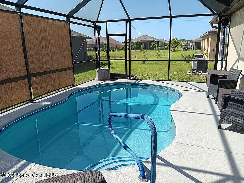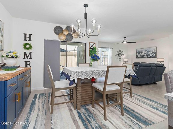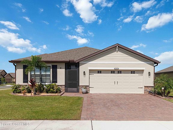 Better than new with every upgrade you could imagine, plus a pool! This beautifully enhanced 2023 DR Horton Cali Model offers 4 bedrooms, 2 bathrooms, and 1,830 sq ft of open-concept living on a premium .19-acre corner lot in Crystal Bay of Grant-Valkaria. Enjoy a 6-month-old custom pool, indirect lake views, and a location just minutes from the Indian River, 15 minutes to Malabar Rd, and 20 minutes to Wabasso Beach. Curb appeal includes a widened paver driveway, vibrant landscaping, gutters, screened front entryway and lanai. Inside you will notice upgraded lighting fixtures, ceiling fans throughout, and a tile-floored primary suite with custom walk-in closet shelving. Kitchen highlights: smart LG oven with built-in air fryer, LG 3-door fridge, deep farmhouse sink, added cabinetry, sleek backsplash, and glass pantry door. Both baths include bidets. Plus: Samsung W/D, electric built-in fireplace with remote, whole-home owned water softener. Resort-style pool, pickleball, and more!