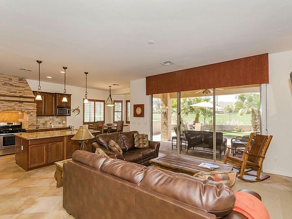LOCATION, LOCATION .Furniture is available on a separate Bill of sale, Ready for VRBO tomorrow. Gorgeous TURNKEY home located in one of the very best locations in Fairways at the Legacy with only one neighbor and open green space in front of the home makes this a private OASIS. This home located on the 8th hole features a wonderful split and open floor plan, high ceilings, beautiful travertine flooring, large bright kitchen with granite counter tops, dark cabinets, top of the line stainless steel appliances with a gas stove with custom stonework. Cozy great room with gas fireplace with floor to ceiling custom stone work, sliding doors to the outside living area. Large master bedroom with large walk in closet, separate door to outside deck area.