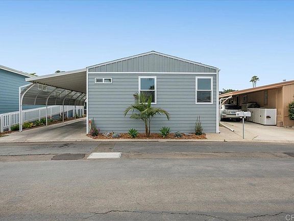 Welcome to your dream beach retreat in Lakeshore Gardens! This completely remodeled 55+ home, just a few blocks from Carlsbad Beach, offers tropical vibes and an unparalleled lakefront living experience. Step inside to a spacious living and entertaining area with vaulted ceilings, grand windows, and stunning lake views. The wide-open windows frame breathtaking views of the lake, inviting natural light and the soothing sounds of nature into your living space. Relax in the airy, open-concept living area or enjoy peaceful moments on the spacious deck, feeling seamlessly connected to the tranquil surroundings. Almost everything in this home is new: a fresh roof, updated paint, beautiful new floors and baseboards, amazing enlarged Trex decks, and updated lighting throughout. The brand-new kitchen features custom soft-close cabinets, stainless steel appliances, large kitchen sink, brushed nickel cabinet pulls, and elegant quartz countertops with a beachy inspired backsplash. Both guest and primary bathrooms have been remodeled too, including a huge primary walk-in shower. The primary ensuite also has an enlarged closet, and added windows for more natural light. This modern manufactured home comes with a generous shed and at least two parking spots. The Lakeshore community offers a pool, spa, clubhouse, and gated entry, making it an ideal primary residence or a second home in sunny San Diego. This coastal gem blends modern elegance with tropical charm, promising a lifestyle of relaxation and beauty. Welcome home!