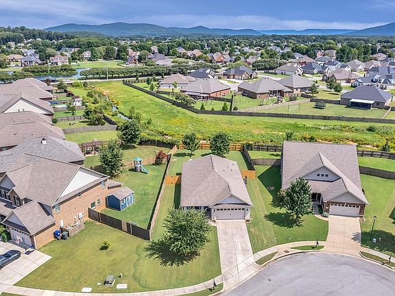 Full brick ranch in Sanctuary Cove with beautiful mountain views! This home features hardwood floors and crown molding throughout, a formal dining room, and a spacious living room with trey ceilings and a cozy gas fireplace. The kitchen offers granite counters, pantry, and plenty of storage. The isolated master suite has trey ceilings, an en suite bath with double vanities, soaking tub, and separate shower. Brand new carpet in all three bedrooms. Enjoy a well-maintained yard, covered patio, and large private backyard with full privacy fencing. Washer, dryer, and refrigerator remain, making this home move-in ready.