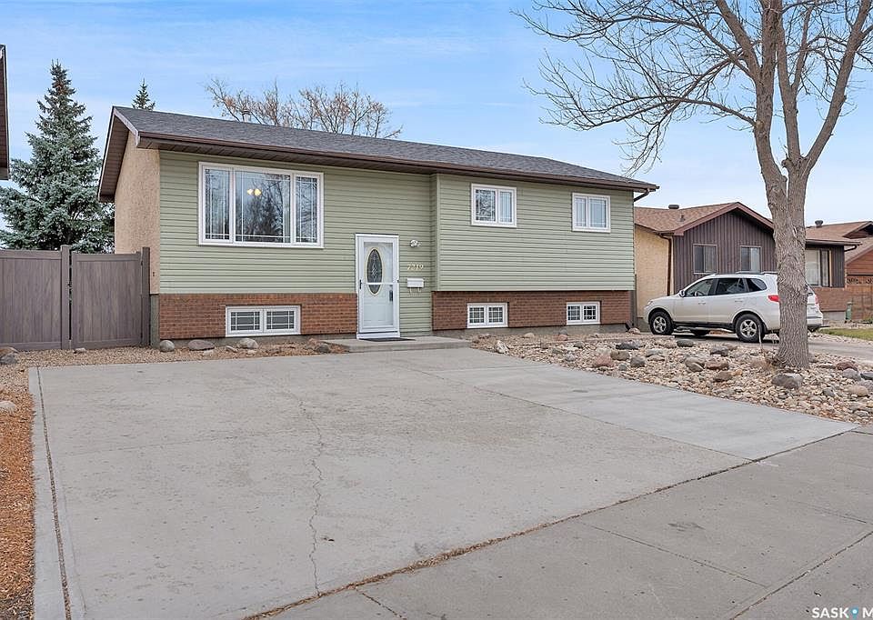Looking for a home in a great neighborhood? A home with functionality and versatility where many of the big tickets items have been done? You'll want to check out this home! Attractive exterior with low maintenance siding and up-dated shingles and windows. Lots of parking space also. The bi-level style provides plenty of natural light on both the upper and lower levels because of the size of the windows. The main floor flows nicely with the living room at the front. Kitchen workspace and dining area look to the back yard. There are 3 good sized bedrooms and an updated main bath. Low maintenance laminate flooring throughout the main floor. The developed lower level provides more living space with a large family room, good sized bedroom( 12.3 x 11.1) a full bath and a den (11.1 x 10.2). There is also a full bath plus the utility room with furnace, laundry and plenty of storage space with extra cabinets (17.7 x 10.5). Laminate flooring. Newer furnace. The back yard has newer PVC fencing. There is a shed. Equalized SkPower $131/month. Equalized SkEnergy $50.98 per month. Quick possession is available. Included: fridge, stove, washer, dryer, built in dishwasher, freezer. Be sure to put this home on your list to view!