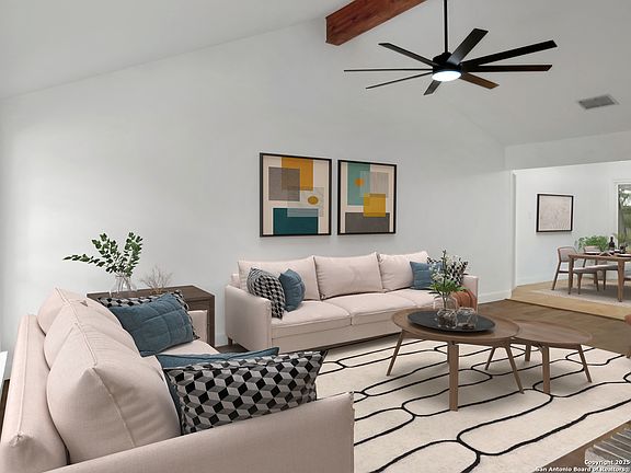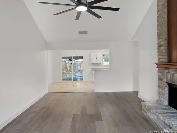 Beautifully updated one-story home in Northwest Crossing with a true split floorplan. Renovated in 2025 with new vinyl plank flooring, granite countertops, travertine stone, new kitchen cabinets, new appliances, and fresh interior/exterior paint. Features an open living area with fireplace, breakfast-bar kitchen, dual walk-in closets in the primary suite, and spacious backyard deck with mature trees. Convenient to Tezel Rd, Guilbeau, Loop 1604, and Northside ISD schools.