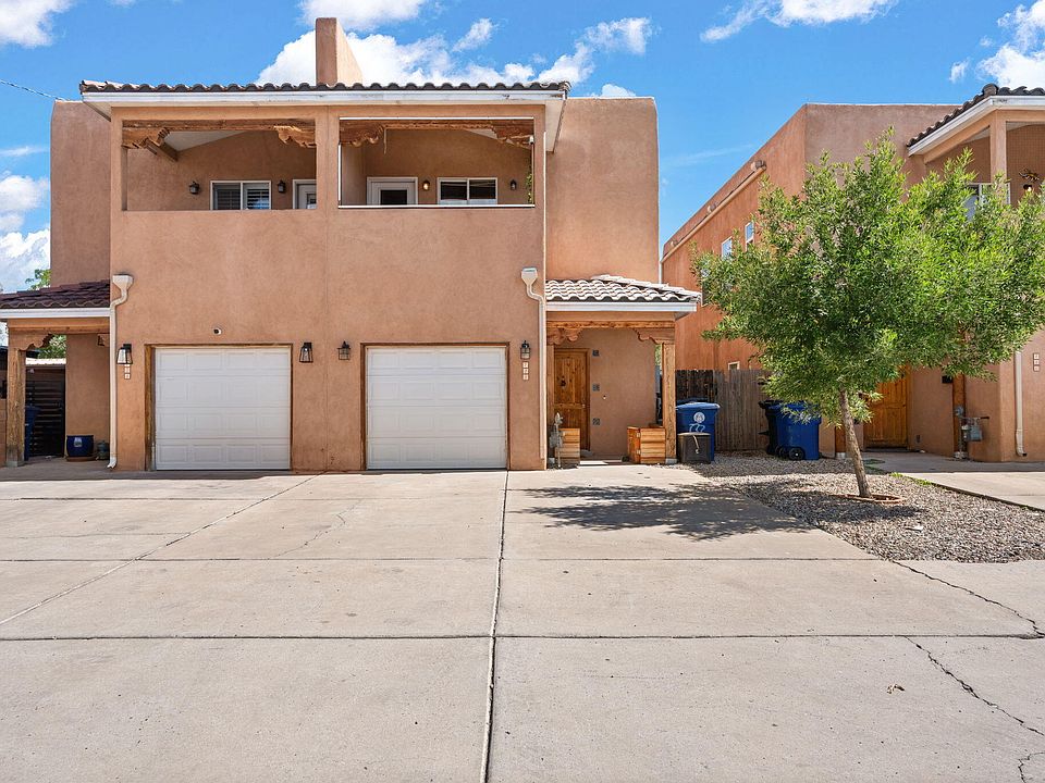 This charming townhome offers the perfect location near historic Old Town, Downtown Albuquerque, and convenient I-40 access with a grocery store right across the street! Inside, you'll find newer carpet (2025) upstairs, spacious bedrooms, and three bathrooms. The primary suite features its own balcony with west-facing views, an ensuite bath, and a walk-in closet. The main level showcases an open-concept kitchen, living, and dining area, complete with refrigerated air for year-round comfort. Outside, enjoy a private backyard designed for easy entertaining with minimal upkeep. A one-car garage adds convenience and storage. Don't miss this one!