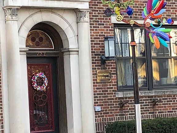 Andrew Carson wind sculpture in front yard.