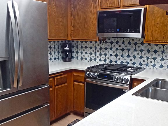 Cozy fireplaceSleek marbelite countertopsNew sinks and faucetsFresh paintNew kitchen appliancesStylish backsplashAmple storage