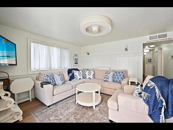 Charming furnished apartment on ground level of a duplex. Two bedrooms (one with Queen and one with two Twins); two full baths. Bistro table for 2. Carport available for tandem parking. Steps from the beach. Large outdoor patio with BBQ (shared with upstairs main house). Available after August 15, 2025. No smoking in and/or on property, no pets. Water/sewer, internet, trash included in rent. SDG&E gas/electricity is a separate meter and included in rent for stays 1-3 months; otherwise, tenant pays. Lease min 30 days and will consider multi months.