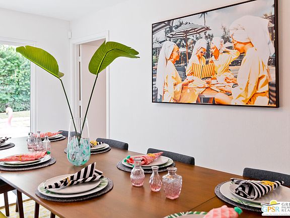 This midcentury modern masterpiece is not just a home, but a complete lifestyle package. Offered turnkey, it comes with everything you need for immediate occupancy or rental. From plush towels to brand new mattresses and bedding, every element has been thoughtfully selected for comfort and style. The home also includes an array of art, furniture, and all essential living comforts down to the smallest detail, ensuring it's perfectly equipped for either a permanent residence or a lucrative short-term rental opportunity. The home was professionally designed. The organized neighborhood for short term rental is the RA#5 Step inside to find a sprawling layout bathed in natural light, highlighting the luxurious updates throughout. The 36" white, Spanish porcelain tile adds to the open, airy feel of this masterfully designed residence. The sleek kitchen, with new stainless appliances and a stunning quartz waterfall island, is perfect for entertaining guests. The main house features four bedrooms and four fully renovated bathrooms. Three of these spacious bedrooms offer ensuite facilities, each with large floating vanities, modern shower tiles, dual vanities, walk-in showers, and LED-lighted vanity mirrors. Outside, the private yard is a landscaped zen paradise, naturally walled with mature ficus and surrounded by mature Frisia trees for ample shade. Relax in the sun by the pool or unwind in the built-in spa, all set against a captivating mountain backdrop. The home is in the perfect location situated adjacent to Movie Colony and mere blocks from downtown Palm Springs, you have easy access to fine dining, shopping, and entertainment. This prime location offers the best of Palm Springs living. Investment Ready:Short-term rental eligible and located in central Palm Springs, in the prized and historic El Mirador neighborhood. Walkable to downtown Palm Springs, Ruth Hardy Park, and the Wellness Park, this property is a smart investment. The home has new appliances, a new roof, and all necessary building permits were pulled from the owner's recent renovation and remodel. This home is being sold turnkey and ready for the new owner! Whether as a primary residence, a vacation home, or a short-term rental property, this turnkey home is ready to fulfill your Palm Springs dream. Experience luxury, comfort, and convenience in this beautifully furnished, turnkey mid-century modern masterpiece. This is not just a home, but a destination for relaxation and enjoyment, perfect for a vacation-like experience every day. Bonus features, on top of all the above bonus features new roof and EV charger for car hooked up in the garage.