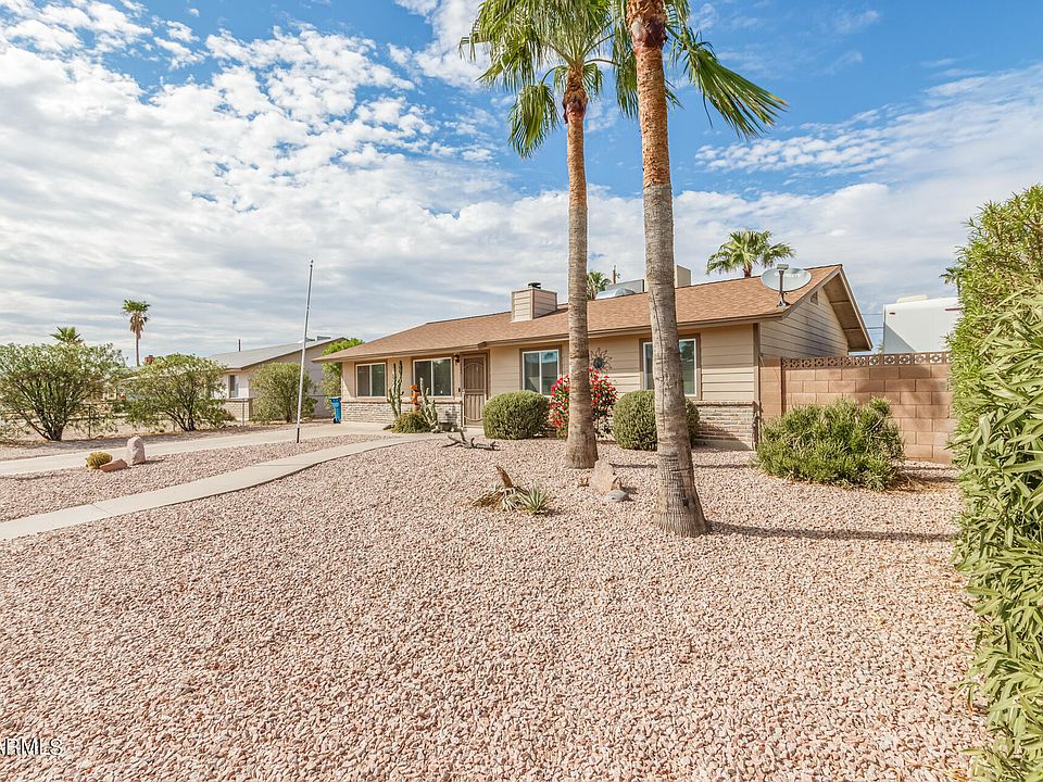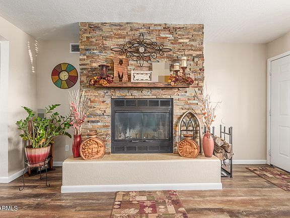 This charming 4-bedroom, 2-bath home boasts a host of modern upgrades, including NEW windows, NEW siding, NEW roof, and a NEW HVAC system! Step inside to discover a beautiful fireplace, an updated white kitchen and freshly laid flooring that adds a touch of elegance to every room. Outside, you'll find a large backyard with a refreshing diving pool perfect for enjoying those sunny Arizona days. and a hot tub for those chilly Arizona nights There is even a NEW DOUBLE RV GATE with plenty of room to park your RV! Did I mention there is NO HOA? You don't want to miss this one!