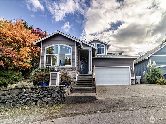 Discover the perfect blend of convenience & charm in this beautifully maintained home! Tucked away in a peaceful setting, this property offers exceptional privacy and comfort. The main level features a bedroom and ¾ bath, ideal for guests or multi-generational living. Upstairs boasts four additional bedrooms, including a spacious primary suite with a cozy fireplace and walk-in closet. HUGE private backyard patio surrounded by lush landscaping. 3-car garage provides abundant space. Located near Kent Station’s dining, shopping, and commuter train, with easy freeway access. This home is a rare find combining serenity and convenience—a true gem you won’t want to miss!