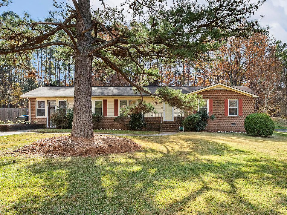 Welcome to easy, one-level living on nearly half an acre! This charming 3-bedroom ranch offers a smartly designed space, freshly updated with new paint throughout and a brand-new deck overlooking the fenced backyard. The kitchen features updated flooring and backsplash, and the outdoor brick grill/fireplace adds the perfect spot for cozy nights or weekend entertaining. With 3 bedrooms, 1.5 baths, and generous living areas, this home works beautifully for a first-time buyer, future rental, or investor flip. The 0.46-acre lot provides room to play, garden, or extend your outdoor lifestyle—all with unbeatable access to restaurants, shopping, parks, fitness options, NC-54, and I-40. A solid home in an unbeatable location—ready for its next chapter!