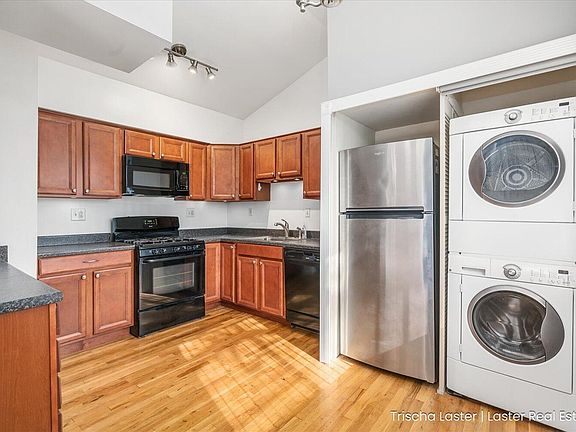 Welcome to this bright 2-bedroom, 1-bathroom condo! Featuring vaulted ceilings, a balcony with sliding glass doors, and abundant natural light, this home feels spacious and inviting. The kitchen includes appliances and a stacked washer/dryer for in-unit convenience. Enjoy low-maintenance living with included water, sewer, trash, lawn care, snow removal and community pool. A one-car garage adds secure parking and storage. This move-in-ready gem is close to dining, shopping, and entertainment. Don't miss out - schedule your showing today and make this condo yours!
