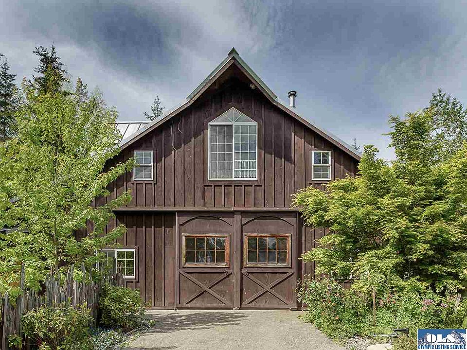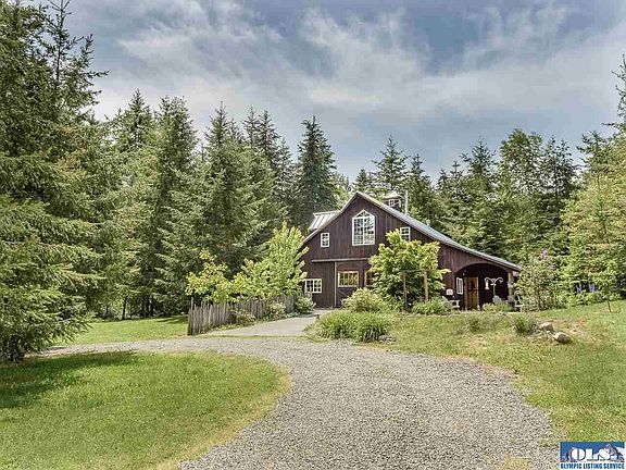 Unique barn style custom home on 5 beautiful acres. Thoughtful design has the bedrooms & laundry on the main floor while the living room & kitchen enjoy a light & bright feeling upstairs. You'll appreciate the extra effort in the 'quiet walk' flooring and painted concrete floors with radiant heat. Creative & rustic living with hanging barn doors and many antique features. Large shop allows for all of your hobbies & toys. The location can't be beat, between Sequim & Port Angeles.
