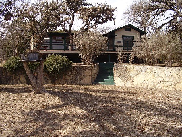 ADORABLE 2-bedroom, 1-1/2 bath home on 2.15 acres inside city limits. Would make a great full-time or weekend home, or a great B&B!!! Or plenty of room to build a larger home, and this would make a great guest house! Only minutes to anywhere in Kerrville. Easy access to I-10. Not in a subdivision. No HOA. Private from the road. Open living, dining, & kitchen with cypress breakfast bar. Living room with two levels, cedar posts, and woodburning fireplace. NEW ROOF 2017! Nice views from the large wood deck, can be more enhanced by trimming some trees. Automatic gate at front entrance to property. 2-car carport, 1-car carport, storage building with electricity (or workshop), plus a smaller storage building. Pretty property is level around house, with slight slope front & back.