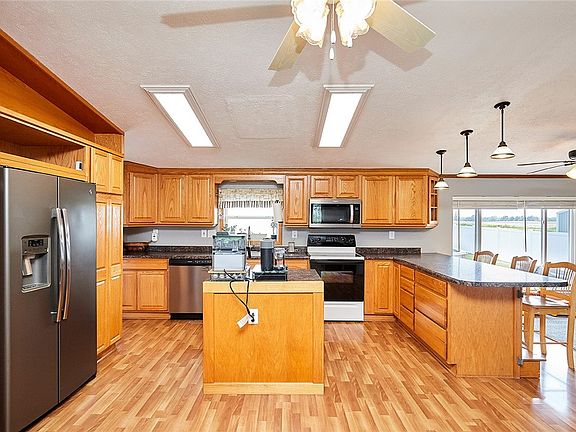 Meticulous best describes this beautiful ranch home! The pride of ownership shines throughout. You are sure to appreciate all the updates completed. All big ticket items have been replaced- windows, mechanicals, roof, decks, flooring, new vinyl fence, the list goes on and on. Truly move in ready! Fantastic, open floorplan. Beginning with the kitchen- ample cabinet/countertop space with an island, breakfast bar, & newer fridge & dishwasher. Oversized family room features a wood fireplace as the focal pt. Enjoy entertaining? Spacious dining rm to host large gatherings. Or use the space as a 2nd fmly rm. 2 bdrms are located off the fmly rm as well as an updated full bath. Master bedroom is located on the opposite side of the home w/ a ¾ bath & laundry rm. The backyard is truly your own oasis! Fully fenced w/ a beautiful view of the fields behind. Above ground pool, hot tub and oversized deck are ideal for the summer! Enjoy small town living in this beautifully modernized home.