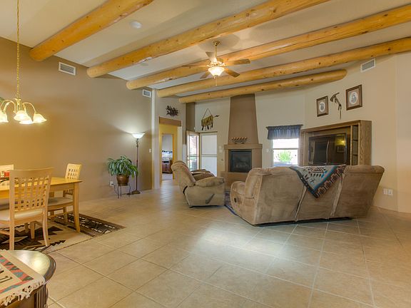 Amazing color surrounds this custom home with its exquisite southwest landscaping, plants, trees and grass. Inside is desired open concept living with 4 bedrooms, a split master floorplan, many upgrades and a large chef's kitchen with high end stainless steel appliances and two pantries. There are two covered patios to enjoy. A large covered patio for entertaining has gas stub outs and two 220 outlets surrounded by the peaceful and private backyard. The second covered patio is off the kitchen and it is also landscaped to perfection with a gas stub out so you can easily bring your cooking outside for a romantic dinner for two. Upgrades include French drain, custom tile work, kiva fireplace, vigas, surround sound in and out, pre-wired for solar panels and more.