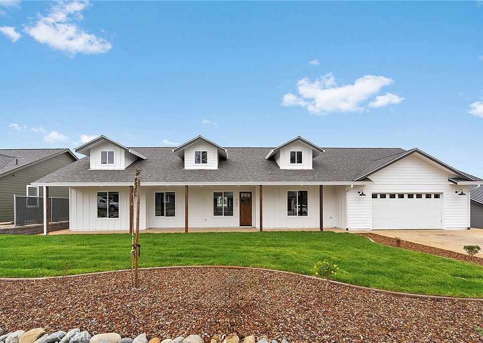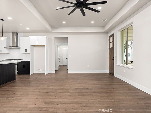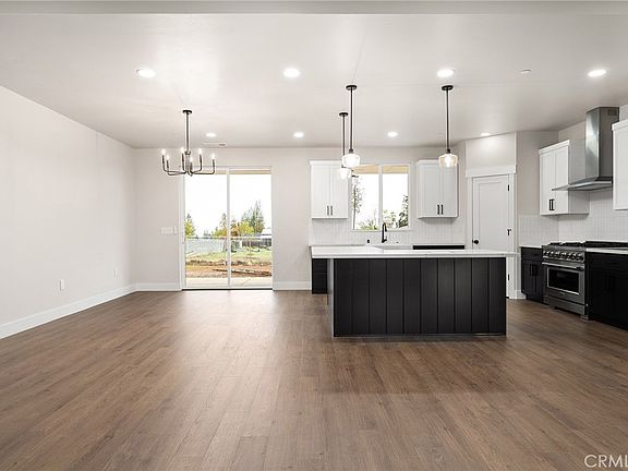 Step into this beautifully designed 3-bedroom + office, 2-bath modern farmhouse and experience the perfect blend of spaciousness, style, and comfort. From the moment you pull up, you'll notice the bright white exterior with striking black and dark wood accents, complemented by a professionally landscaped backyard that sets the tone for this inviting home. Inside, the open floorplan showcases dark wood floors and a stunning black-and-white kitchen, complete with an L-shaped island ideal for entertaining, a Z-Line 6-burner stove, and a corner walk-in pantry for all your culinary needs. The split floorplan ensures privacy, while the spacious bedrooms offer a cozy retreat at the end of the day. The additional versatile room sits right off the main living area and can be customized as a den, playroom, formal dining space, homeschool room, gym, or even converted into a 4th bedroom—the possibilities are endless. Step outside to the fully fenced backyard, a blank canvas ready for gardens, a play area, or outdoor entertaining. The covered back patio extends your living space, creating a seamless indoor/outdoor experience. Located on Madrone, a newly developed street of high-quality stick-built homes, this neighborhood offers a strong sense of community and confidence in your investment. Built by local builder American Dream Construction, known for exceptional craftsmanship, this home includes an 18-month fit & finish warranty (standard is a 12-month). Built by American Dream Construction—one of the few builders in Paradise committed to true wildfire preparedness. These homes feature 5 feet of defensible space with non-combustible materials, Class A fire-rated roofing, ember-resistant Vulcan vents, fiber cement siding, and non-combustible gutters and downspouts. Plus status upgrades include enclosed eaves and soffits, metal gutter guards, dual-pane tempered windows, and fire-resistant exterior doors—offering unmatched protection, quality, and confidence. Spacious, stylish, and thoughtfully designed, 722 Madrone combines modern farmhouse charm with practical living—an ideal place to call home.