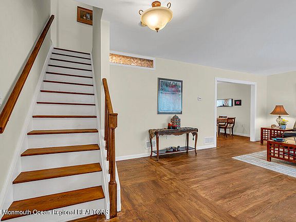 Welcome home to this conveniently located spacious home in north Brick! A circular drive provides plenty of parking upon arrival. Once inside, you'll enjoy hardwood floors throughout most of spacious downstairs. Skylights bring in natural light as you enjoy the family room which opens directly to the dining room and kitchen. Sliders lead to the deck, brick patio and private backyard with mature trees. The first floor features a bonus room that could be used as an office, den or potential bedroom room complete with its own entrance. The large upstairs master BR features a vaulted ceiling, skylights and an ensuite bathroom. A pull-down attic provides plenty of storage in addition to the four upstairs bedrooms. This home is conveniently located and has been lovingly mantained. Don't wait!