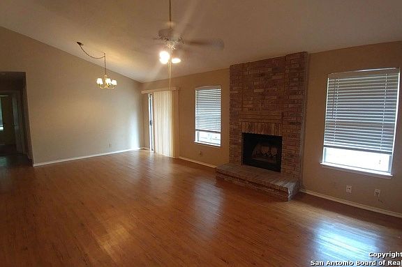 ~Charming 2 BR/1.5 bath home in Meadow Ridge with vinyl plank flooring in the main areas, and carpet in the bedrooms!~Freshly painted~Open living/dining combo w/a fireplace, vaulted ceilings~Kitchen has lots of cabinets & counter space, breakfast bar~Both bedrooms have walk-in closets & ceiling fans~Privacy-fenced backyard & 1 car garage~Small pets considered on a case-by-case basis~Great location near Randolph AFB, 1604, I-35~
