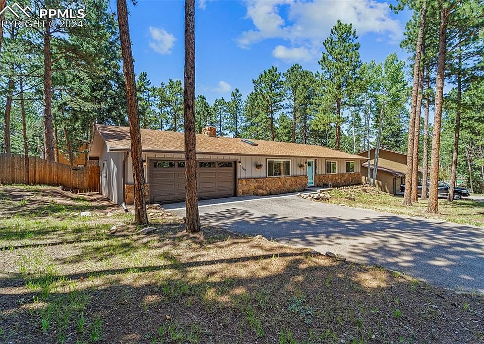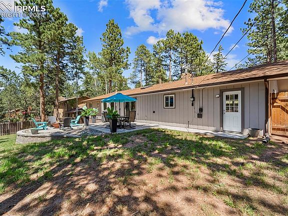 Discover the perfect blend of modern living and natural beauty in this stunning 3-bedroom, 2-bath contemporary mountain home with a 2-car attached garage. Updated and move-in ready, this residence includes a new front door, patio door, and garage door that enhance its appeal. Step outside to enjoy the spacious new multi-tier stamped concrete patio, ideal for outdoor gatherings in the large, fenced backyard surrounded by soaring pine trees. A natural gas grill convenient for BBQ’s and outdoor gas fireplace add to the ambiance. Inside, you’ll be welcomed by an open concept layout filled with natural light, highlighted by energy-efficient Champion windows, and elegant bamboo flooring throughout. The inviting living room boasts a vaulted ceiling, skylight, and a cozy gas-log fireplace, making it a perfect spot for relaxation. Enjoy the convenience of city utilities and a central Woodland Park location, just minutes from Memorial Park, hiking and biking trails, shopping, and amenities. For golf enthusiasts, Shining Mountain Golf Club is also nearby. Move-In ready and available for a quick closing, don’t miss your chance to make this contemporary mountain retreat your new home! Schedule a showing today!