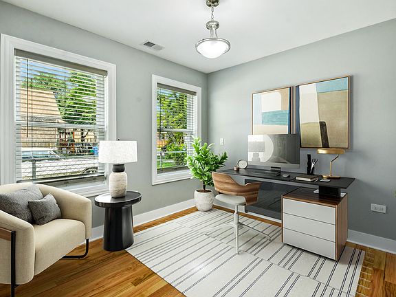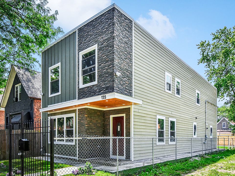 A stunning new construction in the Humboldt Park neighborhood! This contemporary home features five bedrooms and three full bathrooms, including a versatile first-floor bedroom that can also serve as an office. Spanning 2,250 square feet over two levels, the home offers a spacious and flexible living area, complemented by beautiful flooring and high-end finishes. The main level is designed for entertaining, with an open-concept layout that includes a formal living room, separate dining area, powder room, and a designer kitchen. The kitchen boasts white soft-close cabinets, quartz countertops and backsplash, high-end stainless-steel appliances, a bar area with a wine cooler, and an oversized waterfall island with a breakfast bar. Additionally, there is a large pantry adjacent to the kitchen. Upstairs, the luxurious primary bedroom features an en-suite bathroom with his-and-hers walk-in closets, a double vanity, and a glass-enclosed shower. Three additional bedrooms, a second full bathroom, and a convenient laundry closet are also located on this floor. An additional lounge area or family room can serve as a TV room. This home is equipped with an HVAC system, a tankless water heater, and hardwood floors throughout. It features new electrical, plumbing, windows, doors, and more. Instead of a garage, the property offers a large, cemented backyard with a tall fence for privacy. Located within walking distance to parks, schools, shopping, public transportation, and more, this home offers both convenience and luxury. Don't miss the opportunity to own this exceptional property!