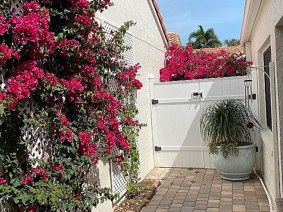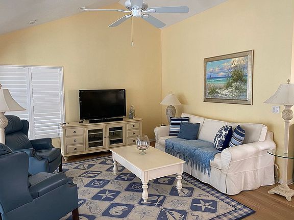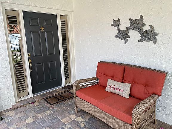 Rare 2 bdrm, 2 bth single-family home with 2-car garage in Beachwalk. This little bungalow has an updated kitchen w/stainless steel appliances, xtra cupboard space & a desk- opens up to finished porch/lanai. New luxury vinyl flooring. Roof & AC NEW 2019. Outdoor shower. Being sold turnkey furnished. Beachwalk has 6 lighted har-tru tennis courts, community center, 2 pools. Serious inquiries only. 2% to buyers agent.