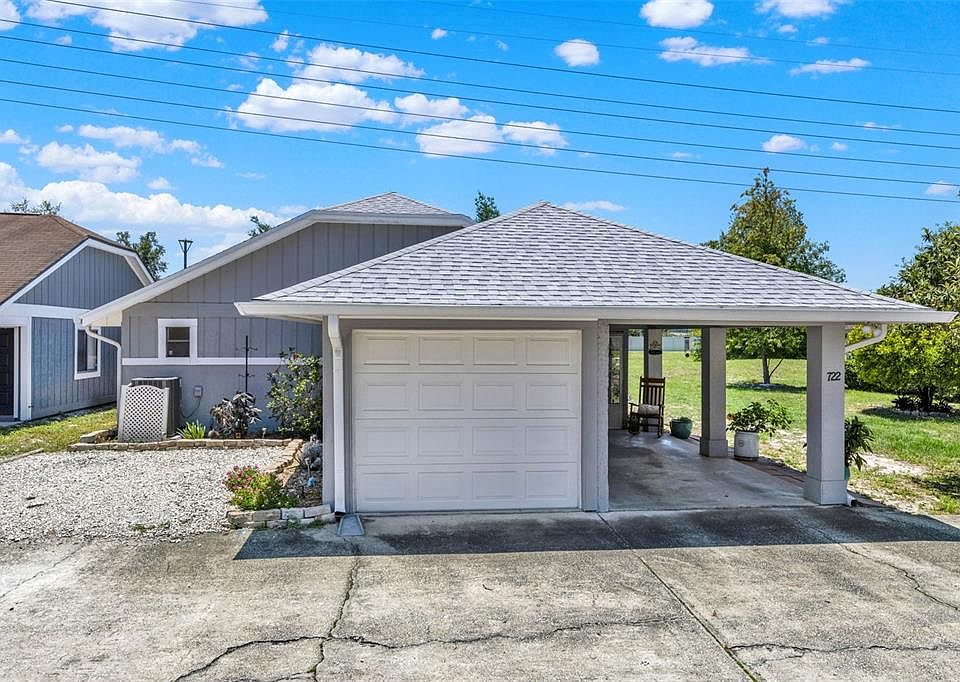 Welcome home to 722 Ridgewood Way, a delightful townhouse nestled in the heart of Winter Springs, FL in the desirable community of Wildwood. Spanning 1,248 square feet, this detached townhouse lives like a single family home featuring PVC Laminate flooring (that looks like hardwood!) throughout the main living space. Upon entering, you’ll be greeted by soaring ceilings and large picture windows that let in ample amounts of natural light. The over-sized dining room/living room combo connects to back porch area that was converted to an under-air Florida room perfect for a play room, office, or sunny sitting area with French doors leading to the backyard area. The recently renovated galley kitchen features stainless steel appliances, quartz countertops, stylish backsplash and updated cabinetry. The home includes two well-appointed bedrooms and two full, recently renovated bathrooms, ensuring a cozy space for relaxation and privacy. The primary bedroom serves as a serene retreat, complete with two closets providing ample storage solutions. Additional highlights include a screened front porch, ideal for enjoying Florida's pleasant weather, and updated amenities such as a newer roof and AC unit. The detached garage features room for one vehicle while the carport offers an additional parking spot. To the left of the garage is a third parking spot assigned to the property. The HOA dues include basic lawn maintenance of the property along with amenities like tennis courts, pickleball courts, basketball courts, community pool, and playground. Roof 2022. AC 2023. Hot Water Heater 2024. Washer & Dryer do not convey.