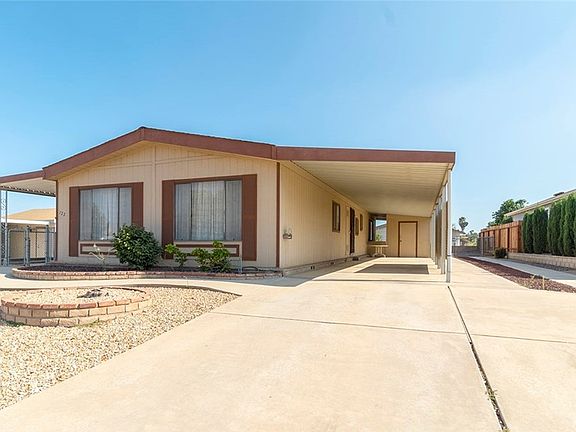 ****Seller is motivated! **** This 2 bedrooms, 2 baths manufactured home located in a rural 55+ community needs creative cosmetic touches. Conveniently located near stores and interstate 215. A little over 1,400 sqft., NO HOA and Low tax rate. Perfect for Seniors looking to downsize w/ a down sizable mortgage payment! A spacious home with kitchen, family room, living room complete with a master bathroom, central-air, and evaporation cooling device. Water heater is new. Enjoy the covered porch area and a 2 carport feature with driveway w RV parking and water conservation landscaping.