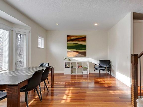 Welcome to this beautifully finished semi-detached home in the desirable community of Windsor Park. You are welcomed by a functional entryway with a large front closet, creating an organized and practical space. The main floor features hardwood flooring, a well-maintained interior, and a spacious, open floor plan that is perfect for everyday living and entertaining. The recently updated kitchen features dual-tone cabinetry, quartz countertops, and stainless steel appliances. Recent updates add comfort and value, including air conditioning installed in 2024, new carpet on the upper level in 2024, and an on-demand hot water system added in 2023. The upper level offers three large bedrooms, each with a generous closet, as well as conveniently located laundry. The primary bedroom is an inviting retreat with vaulted ceilings, two walk-in closets, french doors to a juliet balcony allowing for fresh air and plenty of sunlight, and a large ensuite that includes a soaker tub and a glass shower. The low-maintenance backyard features a large deck built in 2024, offering an ideal space for outdoor dining, relaxation and entertaining. Storage is abundant throughout the home, with a large storage room in the basement plus additional storage available in the well-organized utility room. The fully developed basement features beautiful built-ins, an electric fireplace, and a large guest room with its own ensuite bathroom. A double detached garage provides secure parking and even more storage options. Windsor Park is known for its convenient central location, quick commuting options, and proximity to shops and restaurants in Britannia. Residents enjoy easy access to walking paths along the nearby ridge and the Elbow River pathways, making it a great community for both families and professionals.