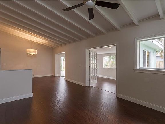 Ready to Move In! Completely renovated 3 bedrm 2 bath home. New roof Feb 2016, Covered front entry and breezeway with detached oversize one car garage. Beautiful wood floors and high vaulted ceilings. Spacious open floor plan features a wood burning fireplace, french doors open to a large family room. The split bedroom plan offers privacy for the master bedrm. White shaker style cabinetry, walnut butcher block counters and all new appliances. New washer & dryer in laundry room. Pergola covered brick paver patio and large backyard with room for a pool. Only minutes to the beach!