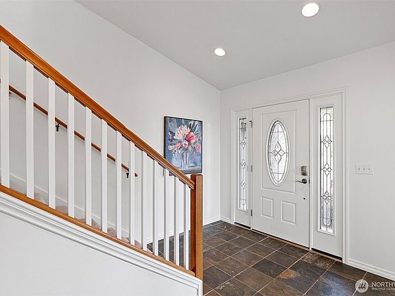 Elevated above Sinclair Inlet with captivating views of Bremerton and the Manette Bridge, this custom 3-bed, 2.5-bath home offers 2,804 SqFt of thoughtfully designed living. Built in 2004 and backed by a lush greenbelt, it blends privacy with comfort. The entire upper level is a dedicated primary retreat—complete with 5-piece bath and dual walk-in closets. Downstairs you'll find two bedrooms, full bath, and a family room. The main level centers around a vaulted living room with skylights, gas fireplace, a bright open kitchen w/ brand new SS appliances, and view-facing picture windows. Additional features include office/den at front of home, furnace & heat pump, and two car garage. This amazing home is a rare find in Sinclair Heights!
