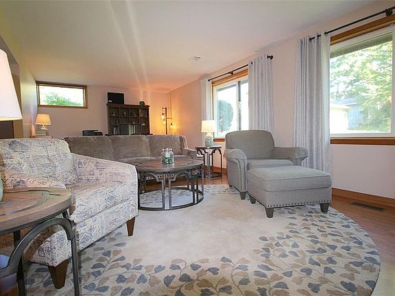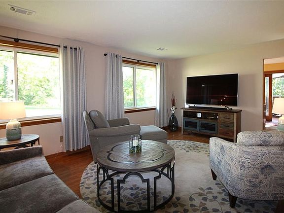 Welcome to this unique modified A frame Amherst home that sits on a large lot overlooking a creek surrounded by woods giving a tree top feel. This three-bedroom, 2.5 half bath home also offers a first-floor laundry and office/den that can easily be converted to a fourth bedroom. The features also include floor to ceiling windows that allows north/south sun exposure for a cozy feel inside and out. The open concept eat-in kitchen with newer appliances, is accessible from first-floor family room or expansive deck extending across the back of the home. There is also a shed to keep all your cool stuff in. Updates include new roof and gutters 2019, Pella windows and doors 2016/2018; exterior painting 2020; garage door opener 2018, gutter covers 2019. This beautiful property is within walking distance to downtown Amherst and schools. Come and see as this one won't last!