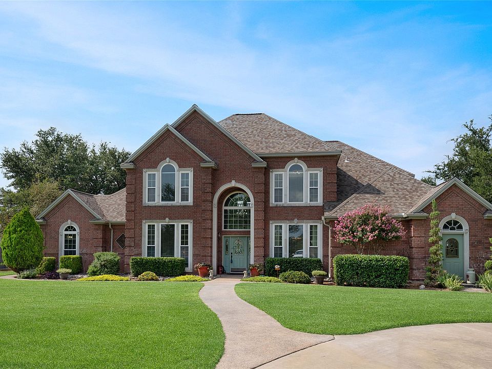 This gorgeous home is a true retreat featuring an owner's suite overlooking a stunning pool & expansive acreage. The pool, complete w waterfalls, heater & lounging ledge, is flanked by privacy walls. The expansive patio offers shade & is plumbed for a gas grill. The property currently has cattle in the pasture but is perfect for horses w acreage expanding beyond the tree line & creek. The main level has a bright kitchen w granite countertops. A hidden laundry & pantry featuring cabinetry & a coffee bar, is cleverly placed behind a door size spice rack. The upper level features bamboo flooring w a deck off the game room offering breathtaking views of the property & Texas sunsets. The three car attached garage sports epoxy flooring & new carriage style doors. The detached garage is perfect for a shop or a guest house. Most of the windows have been replaced w Champion windows. Roof replaced in 21 & the two HVACs replaced in 23 & 24. The fenced & gated property has two wells.