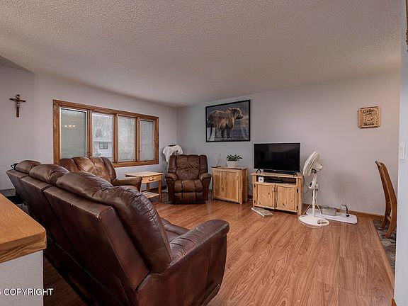 Meticulously maintained 3 bed, 2 bath home in east Anchorage offers updated living with a newer metal roof, fresh interior paint, durable LVP floors and high quality vinyl windows. HVAC & utilities are in great shape. Enjoy a fenced yard with apple trees, berry bushes and RV parking, with easy walks to nearby shopping, parks and entertainment.This 1,614 sq ft residence sits on a level 0.18 acre lot. Inside, the open living and dining area flows into a remodeled kitchen with updated cabinets, counters and appliances. Both bathrooms have modern fixtures, and a high efficiency furnace and newer water heater provide low maintenance comfort. Durable LVP flooring and fresh interior paint offer a crisp, move in ready feel. Outside, the fully fenced yard is an urban oasis with mature landscaping, apple trees and berry bushes. A large two car garage, paved driveway and backyard RV parking provide ample space for vehicles and toys, while an enclosed porch and 12×14 shed with power offer extra storage and workspace. The heated, well lit crawl space helps protect your investment. Situated in a walkable neighborhood with sidewalks and quick access to parks and greenbelts, this home offers an easy commute to shopping, entertainment, JBER and the UMED district. With little to no deferred maintenance, it combines the charm of an established neighborhood with modern updates and a lifestyle of convenience and comfort.